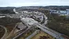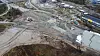 I det fjerne ligger både en bensinstasjon og en Burger King som har fått seg en kraftig trøkk som følge av jordskredet. Foto: Marius Lysø