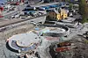 På tunneltaket til Strindheimtunnelen jobber anleggsgartnerne nå for fullt med planting og muring i den nye Strandveiparken.