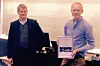 Det var Tom Baade-Mathiesen, direktør i Norconsult (til venstre på bildet) som overrakte prisen til Alex Klein-Paste som hovedsaklig underviser i faget Rehabilitering og drift av veier. (