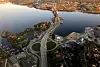 Luftfoto over Vige hvor den nye strekningen starter og fortsetter vestover til Grauthelleren.