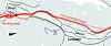 Den mørkerøde linjen viser Nye Veiers nye traséforslag. Linjen i lysere rødfarge viser opprinnelig plan.Illustrasjon: Nye Veier.