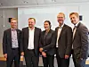 Nye Veier markerte fredag offisiell åpning av nye lokaler på Lillehammer. Fv: Helge Orten (leder av Transport- og kommunikasjonskomiteen), prosjektdirektør Øyvind Moshagen, administrerende direktør Ingrid Dahl Hovland (begge Nye Veier), storingsrepresentant Tor Andre Johnsen og statssekretær Tommy Skjervold i samferdselsdepartementet.