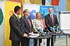 Abid Raja (fra venstre), Hans Fredrik Grøvan og Linda Hofstad Helleland fra Stortingets Transport og kommunikasjonskomité, her med samferdselsminister Ketil Solvik-Olsen.