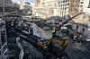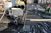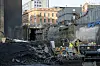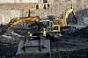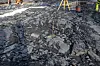 En maskin fjerner alunskifer, en annen flytter massene. Hver dag fraktes tonnevis ut av sentrum.