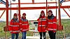 Fire studentar med sommarjobb i Vegvesenet sommaren 2015. Fra venstre: Ida Romslo, Iris Kristin Koa, Mari Voll Dombu og Sara Waagen, her på befaring på ny bru over Dolmsundet i Sør-Trøndelag.