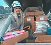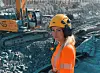 Emilie Hoffmeyer ved gravemaskin. Foto: Privat