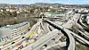 Dronebilde av Fornebukrysset. Arbeidet vil foregå i området mellom Granfosstunnelen, og E18. All trafikk vil flyttes over i det østgående løpet. Foto: Marius Larrarte Jacobsen / Statens vegvesen / Handout