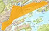 Foreløpig oversiktskart over området der Statens vegvesen ønsker å gjennomføre grunnundersøkelser (Norgeskart.no, Kartverket).