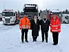 Nicolai Jakhelln i Norges Lastebileier-Forbund, Ole Andreas Hagen fra NHO Logistikk og transport, ordfører Ståle Lien Hansen og vegdirektør Ingrid Dahl Hovland er svært godt fornøyde med den nye døgnhvileplassen på E6 ved Jessheim, og at det ligger an til åpning av sju nye plasser i 2026. Foto: Frida Gunnestad Johansen Statens vegvesen