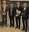Fra Diego Barbieris eksamen på NTNU.Foto: Statens vegvesen. F.v. Alex Klein-Paste, Professor, NTNU, Trondheim, Zhuangzhuang Liu, Professor, Chang'an University, Xi'an, Kina, Diego Barbieri og Sigurður Erlingsson og Professor, University of Iceland + VTI, Sverige.