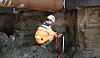 Før entreprenøren Mesta kan bygge betongtunnelen, må de grave ut massene under rullebanen i flere nivå. De har gravd ut det øverste laget og har satt avstivere av stålrør mellom spuntveggene før de har fortsatt å grave seg nedover. Men nå har de nådd et punkt hvor grunnvannstanden må senkes før de kan grave videre. For å få til det må de sette ned WellPoint.