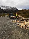 overskuddsmateriell er kjørt frem klart for henting.
