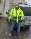 – Jeg jobber langs veien og driver med kantslått og feiing. Da må vi sette opp skilter for å varsle om arbeidene vi utfører, og da krever Vegvesenet klær i synlighetsklasse tre. Det betyr at bukse og jakke må ha tilstrekkelig med reflekser og gulfargen må være synlig. Det er av og til vanskelig å få til når klærne blir møkkete, sier Stein Inge Skaar til Byggeindustrien.